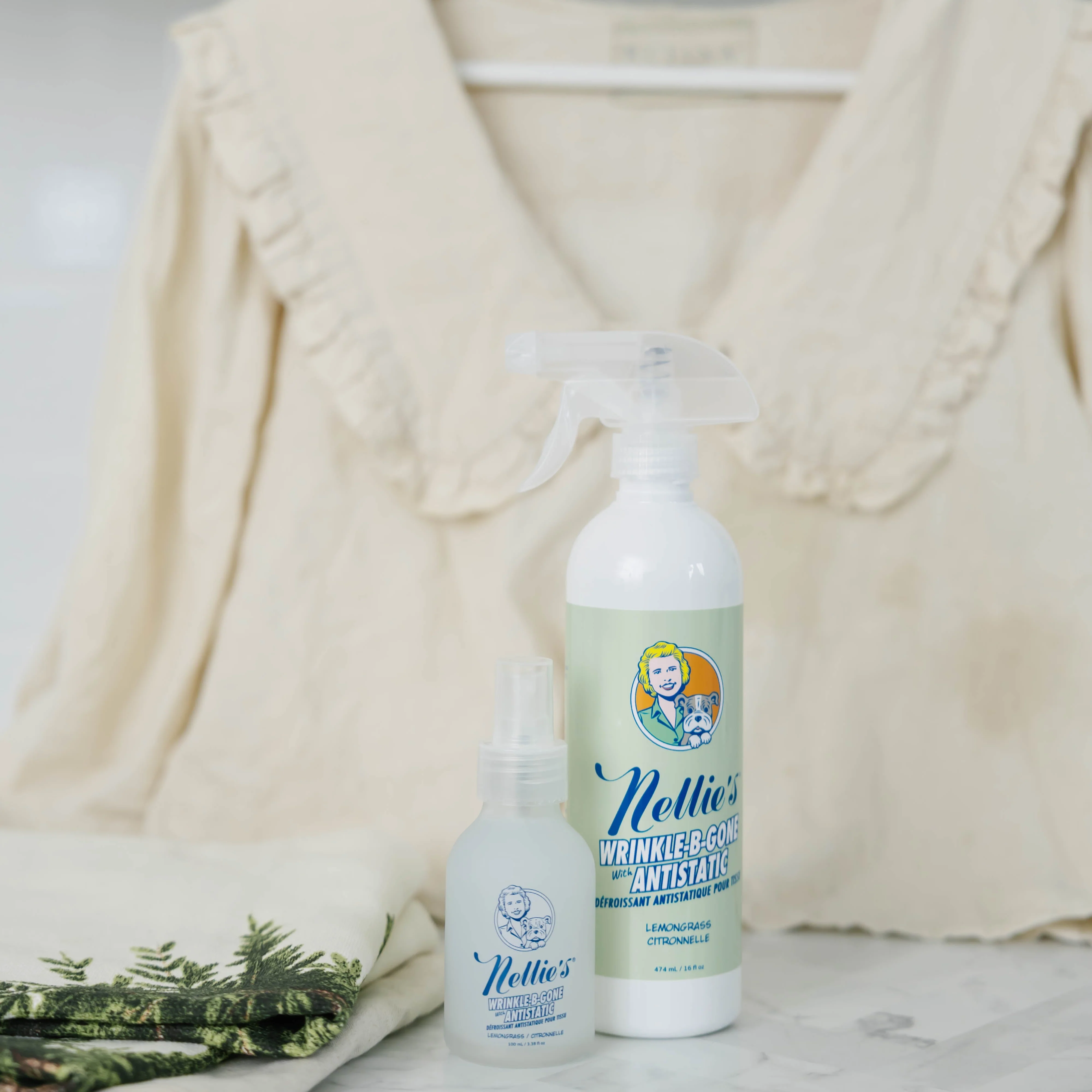 Sorry folks - this one doesn’t work on the face (we’ve tried…), but it does work wonders on wrinkled clothes! Our plant-based formula removes static, wrinkles and freshens fabrics with Nellie’s signature lemongrass fragrance. Who even has time to iron (other than your mother-in-law)? In as little as 5 minutes, you can have the same effect as an iron using the Wrinkle-B-Gone – really! Simply shake, spray, smooth, and snap!